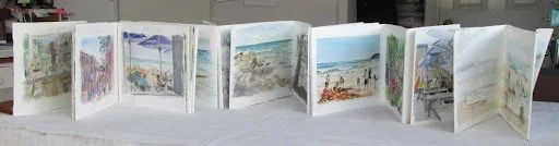 Mostly the simple sketches illustrated just one event or location of each day, and I assembled them all into a book, concertina-style. I had a bit of trouble keeping the pages together and because of the thirty-one days, it is really too big to display! However, it makes a very nice record of the simple days of summer.