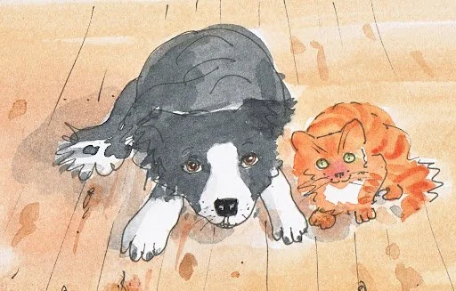 Little Border Collie meets Fluffy Kitten,